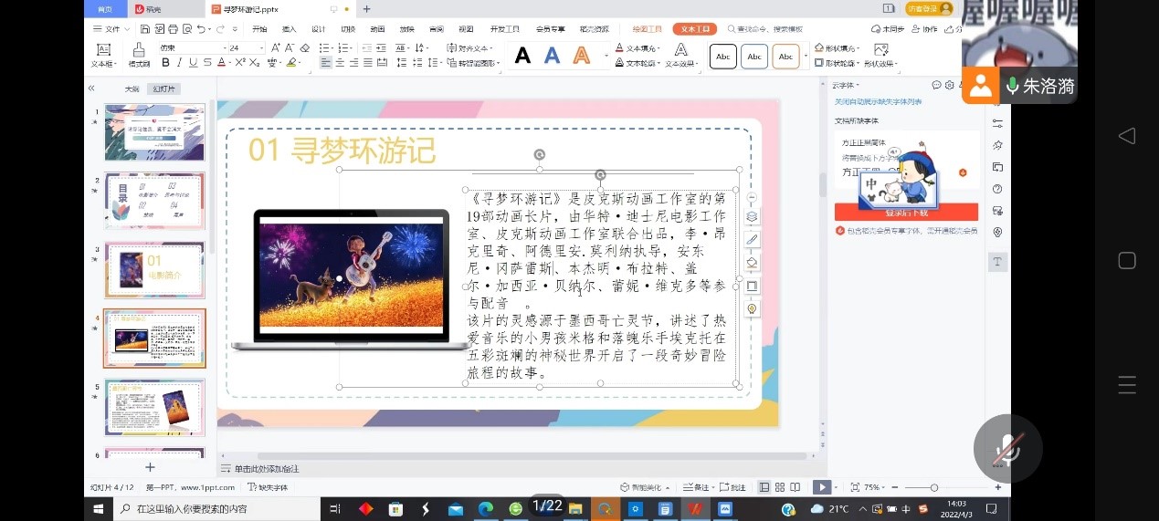 清明节是我国传统的重大节日,扫墓祭祀、缅怀祖先,是中华民族自古以来的优良传统,不仅有利于弘扬孝道亲情、唤醒家族共同记忆,还可促进家族成员乃至民族的凝聚力和认同感。但在节日来临之际,难免有同学思念已故亲人,产生悲观、消极的情绪。为促进同学们树立积极向上、乐观勇敢和正确面对人生的心态,同时为学生搭建起锻炼心理承受能力、提高心理素质水平,2022年4月3日下午,2138CC太阳集团心理工作站通过企业微信线上平台举办了一场以“请你记住我,爱不会消失”为主题的电影展播活动。