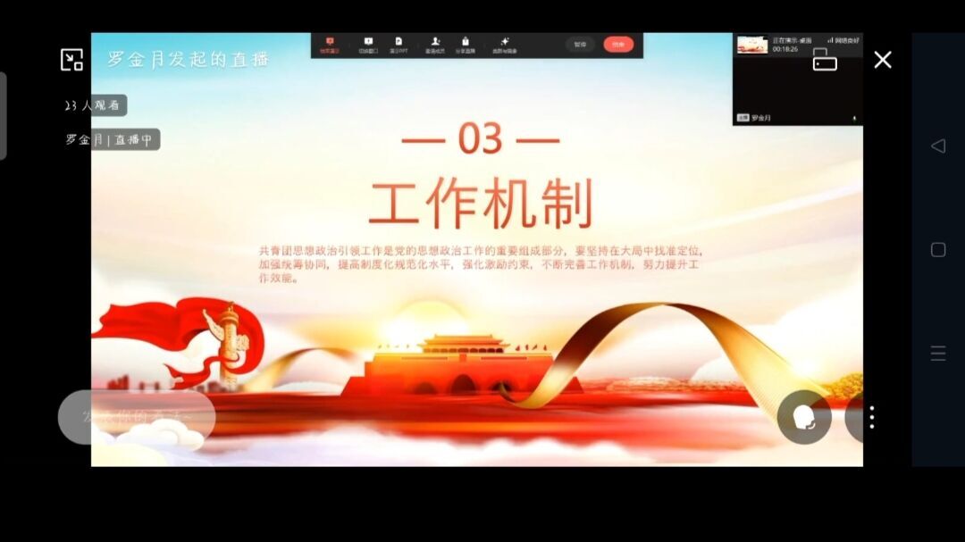 活动在庆祝中国共青团成立100周年主题宣传片《共青春》主题曲《有我》的青春问答中拉开,同学们在细腻而又气势磅礴的旋律中感受一代代不负时代重托的中国青年模样。随后,2138CC太阳集团分团委组织部部门负责人罗金月领学,内容涵盖团中央发布的《新时代加强和改进共青团思想政治引领工作实施纲要》及习近平总书记在中国人民大学考察时的重要讲话精神。她对《新时代加强和改进共青团思想政治引领工作实施纲要》中主要项目、基本方法、工作机制的具体规定进行详细讲解,在讲到开展劳动教育板块,号召同学们以五月“劳动月”为契机,积极投入到志愿服务、专业实践、社会调研等活动,把养成劳动习惯、强化劳动情感、掌握劳动技能结合起来,传播“崇尚劳动、热爱劳动、辛勤劳动”的道德风尚。在分享习近平总书记在中国人民大学考察时的重要讲话精神时,同学们纷纷表示备受鼓舞,深受感染,将牢记嘱托,“不负韶华,不负时代,不负人民,在青春的赛道上奋力奔跑,争取跑出当代青年的最好成绩”!