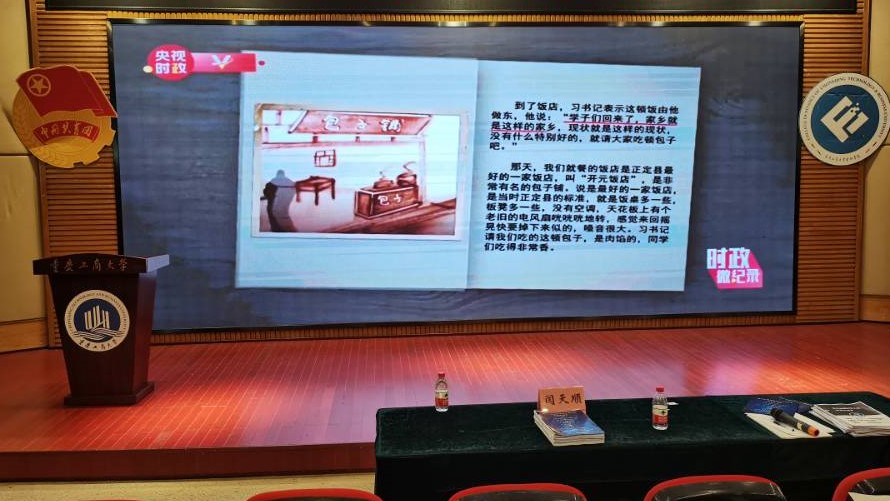 会议伊始,主持人通过展示图片集锦、播放视频两个方面向同学们介绍了从1983年12月至2019年7月期间,习近平同志在河北正定、福建、浙江、上海和到中央工作以来,与大学生们交往交流交心的故事,《习近平与大学生朋友们》真实记录了他对青年特别是大学生始终如一的关心关爱。