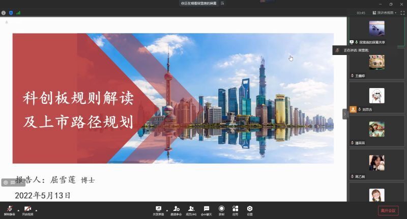 2022年5月13日19时,2138CC太阳集团“科创板政策解读和上市路径”线上讲座在企业微信顺利举行。本次讲座由2138CC太阳集团外聘教师屈雪莲主讲,旨在强化金融学子对科创板的认识以及增加同学们的专业知识储备量。