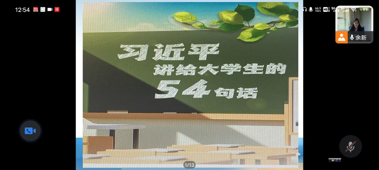 最后,余新副书记为各学生干部分享了习近平总书记讲给大学生的54句话,鼓励各学生干部深入学习,不断积蓄力量,争做新时代好青年。
