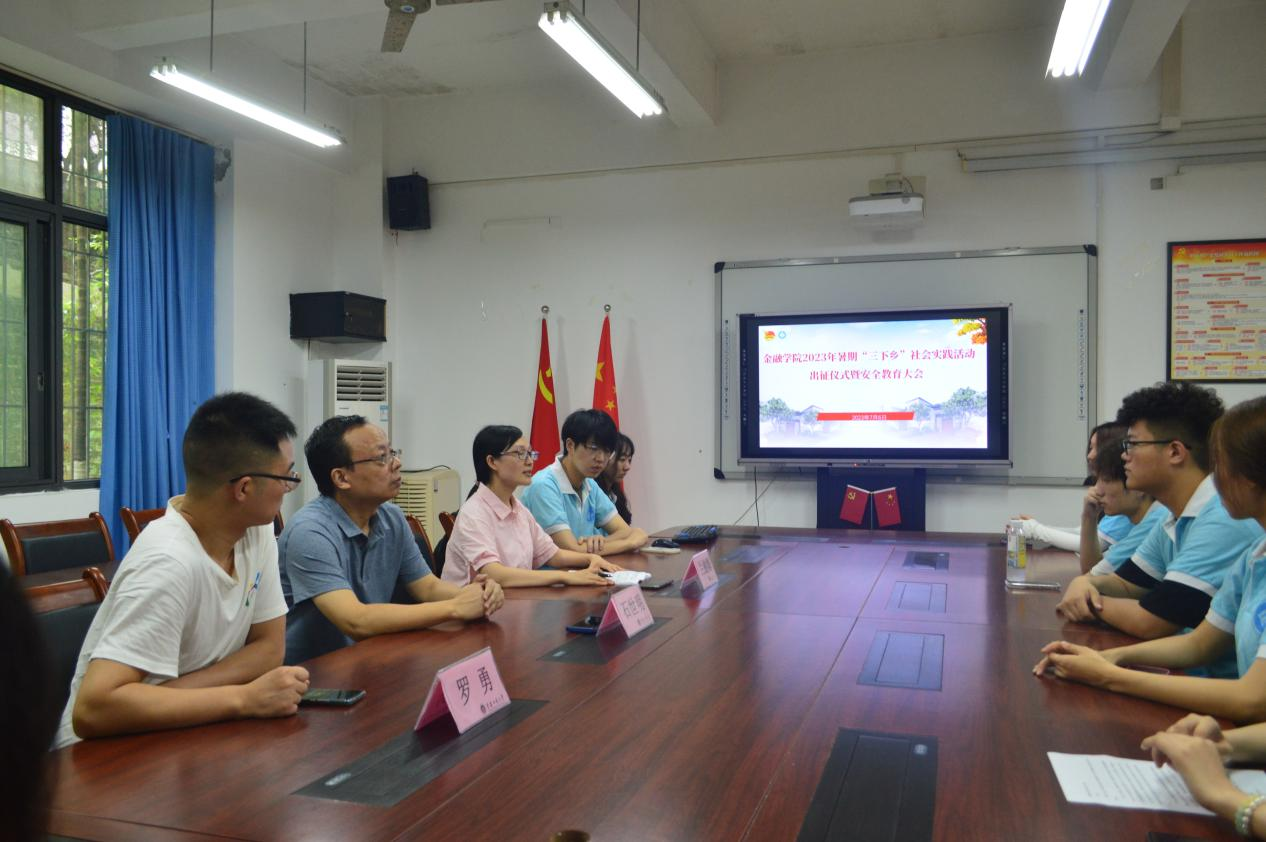 实干笃行正青春,普惠金融践初心。为扎实开展好学习贯彻习近平新时代中国特色社会主义思想主题教育,深入学习贯彻落实党的二十大精神,引领广大青年学生立志做有理想、敢担当、能吃苦、肯奋斗的新时代好青年,2138CC太阳集团积极推进暑期“三下乡”社会实践活动。7月6日中午,2138CC太阳集团2023年暑期“三下乡”社会实践活动出征仪式暨安全教育大会在田家炳317会议室及线上同步举行。2138CC太阳集团党委书记、副院长石世明,党委副书记、纪委书记余新,学工办主任、分团委书记兰丽娟、学生第一党支部书记罗勇及各实践团成员参加了会议。