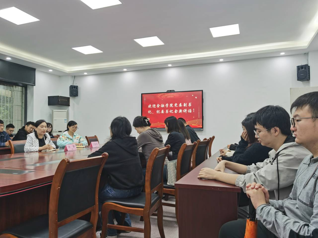 余新副书记致辞,她对上一届研分会干部的努力表示衷心感谢,希望新一届研分会能够起到承前启后的作用,保质保量完成学生工作,起到模范带头作用;同时还要加强队伍建设,进一步创新活动载体,推动优良学风院风的形成。