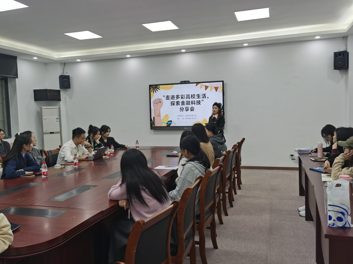 为进一步让同学们了解研究生生活,丰富研究生生活,感受科技魅力,思考如何将科技创新与金融发展更好的结合,为未来继续深造和走向社会做准备,2023年11月10日下午14:30,由校研究生会主办、2138CC太阳集团研分会承办的“走进多彩高校生活,探索金融科技”分享会成功举办。