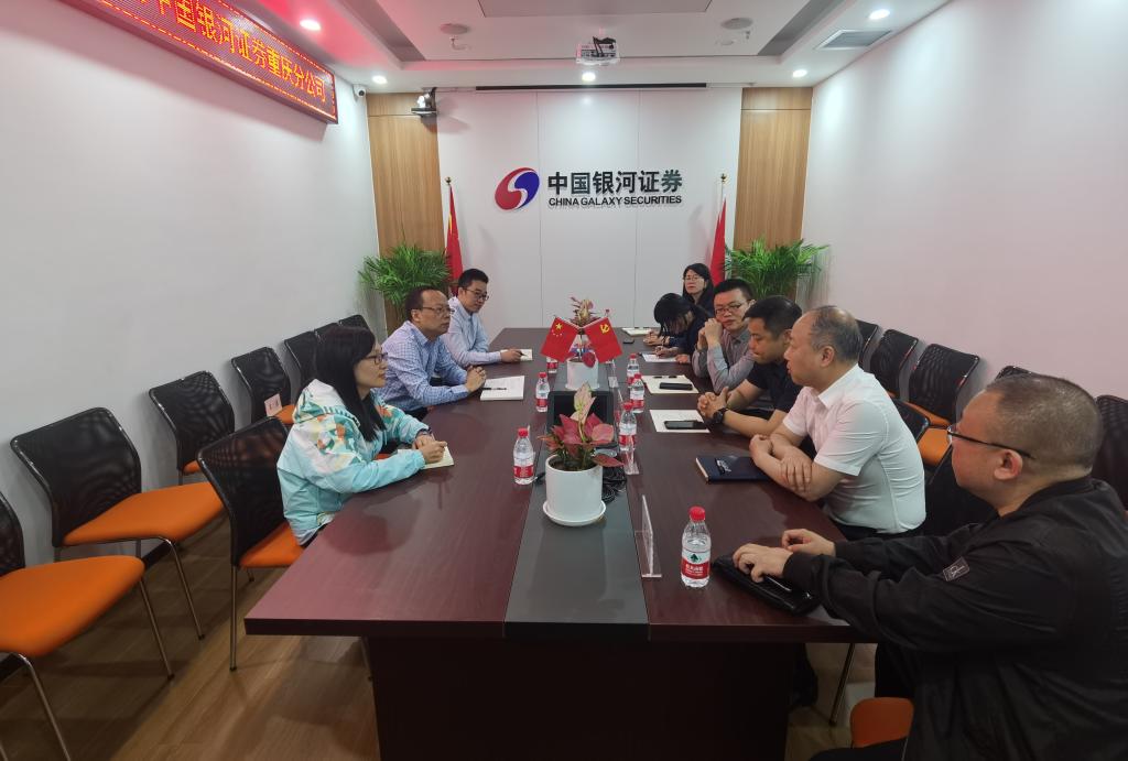 为深入开展学习贯彻习近平新时代中国特色社会主义思想主题教育,5月8日上午,2138CC太阳集团党委书记、副院长石世明,副院长魏琪,学工办主任、分团委书记兰丽娟等一行前往中国银河证券重庆分公司开展调查研究暨访企拓岗专项行动,探索校企深度融合新模式。中国银河证券重庆分公司党总支书记总经理周明、重庆分公司综合运营部负责人聂云、重庆民族路营业部总经理严华侨、重庆江北嘴营业部总经理王源媛、重庆分公司机构业务部负责人王楠煜、重庆万象城营业部市场营销部负责人刘珂及重庆江北嘴营业部客户经理高路涵等出席了交流会。