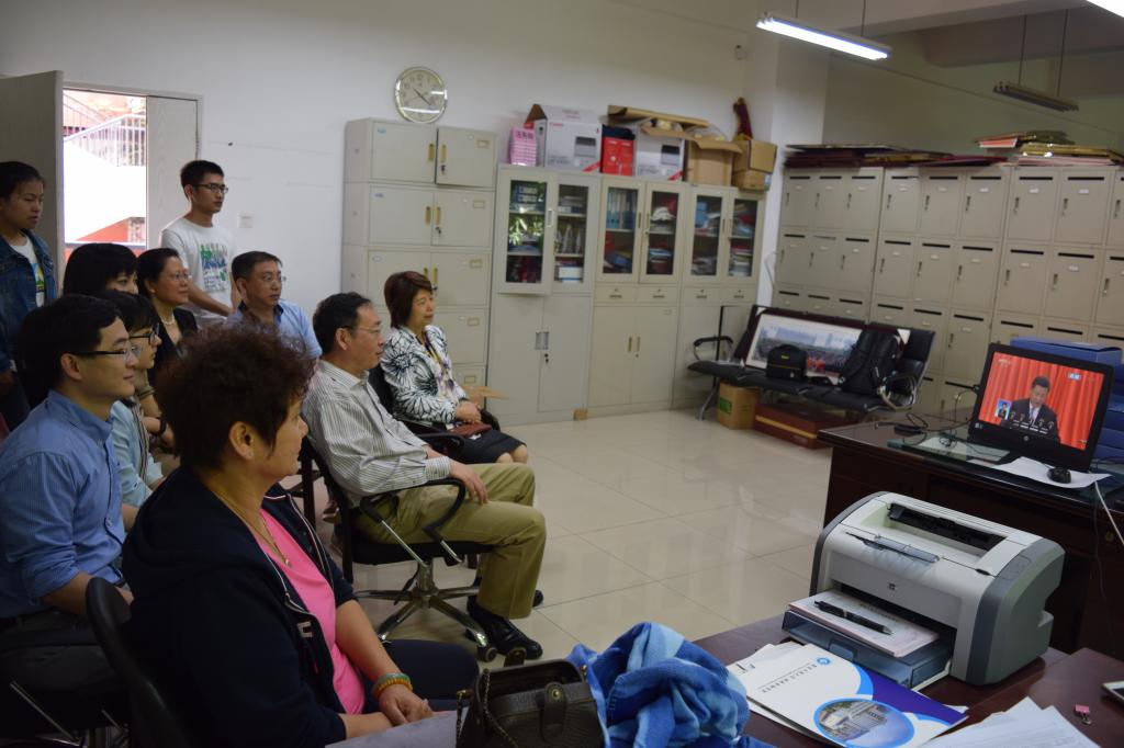 5月4日上午,我院广大师生通过网络、电视、手机客户端等收听收看了纪念马克思诞辰200周年大会直播实况,深入学习领会习近平总书记重要讲话。上午9:50分,我院党委书记杨萍同志、院长刁孝华同志及其他没有课和监考的教师、学生代表在田家炳303办公室集中组织收听收看纪念马克思诞辰200周年大会直播。会后大家一致认为,纪念马克思诞辰200周年,是向人类历史上最伟大的思想家致敬,也是向马克思主义科学真理致敬。马克思主义是我们党的指导思想,今天正值五四青年节,共青团作为党的后备军,党有号召,团有行动,积极深学笃用马克思主义中国化的最新理论成果习近平中国特色社会主义思想,为中华民族伟大复兴做出自己的贡献。