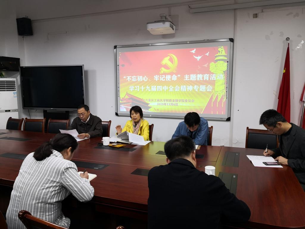 11月6日,财政2138CC太阳集团党委召开专题会贯彻学习领会十九届四中全会精神。会议由党委书记杨萍主持,班子全体成员参加了学习。