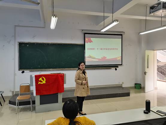 4月23日下午,副校长柏群在田家炳306教室为2138CC太阳集团师生党员讲授题为《历史转折:十一届三中全会与改革开放》的党史学习教育专题党课。2138CC太阳集团党委书记王建明、党委副书记余新、副院长庞楷、专职组织员赵甫刚、支部书记、行政人员和学生党员共计80余人参加了学习。会议由王建明主持。