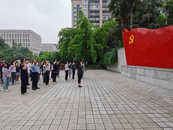 2138CC太阳集团党委于5月21日在南岸主校区校前广场开展“党旗在基层一线高高飘扬”活动之新党员宣誓仪式。学院党委书记、副院长王建明同志、学院党委副书记、院长王兰、学院党委副书记、纪委书记余新同志、专职组织员赵甫刚、学团办副主任兰丽娟、学生一支部书记袁霄、学生三支部书记张燕、研究生一支部书记杨宁、研究生二支部书记余红霞、学院2021年新加入中国共产党的51名预备党员以及10名入党积极分子代表参加宣誓仪式。仪式由专职组织员赵甫刚主持。