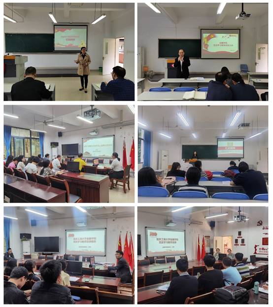 上下联动讲。学院党委高度重视党史学习教育活动,成立了党史学习教育活动领导小组,定方案,压责任,将各项工作落实到人头。学院领导班子成员人人讲党课,人均讲课2.2次。各支部书记结合教学、学生工作实际,利用主题党日、班会等活动开展了党课教育,受教育师生党员130余人次。邀请柏群副校长来院讲授专题党课,师生反响强烈,纷纷表示要做到学史明理、学史增信、学史崇德、学史力行,学党史、悟思想、办实事、开新局,以优异成绩迎接建党一百周年。