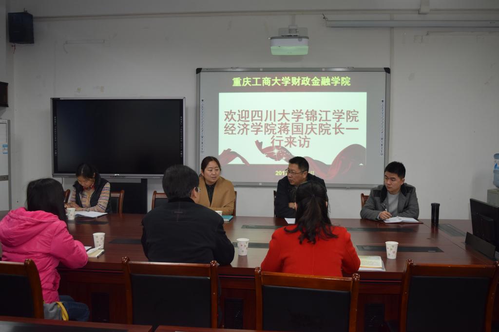 2017年3月23日上午9:00点,四川大学锦江学院经济学院院长蔡国庆教授等三人一行到我院交流访问,我院副院长王兰教授、投资系教师毛跃一教授等人进行了亲切接待,双方共同探讨了CFA办学经验等事宜。