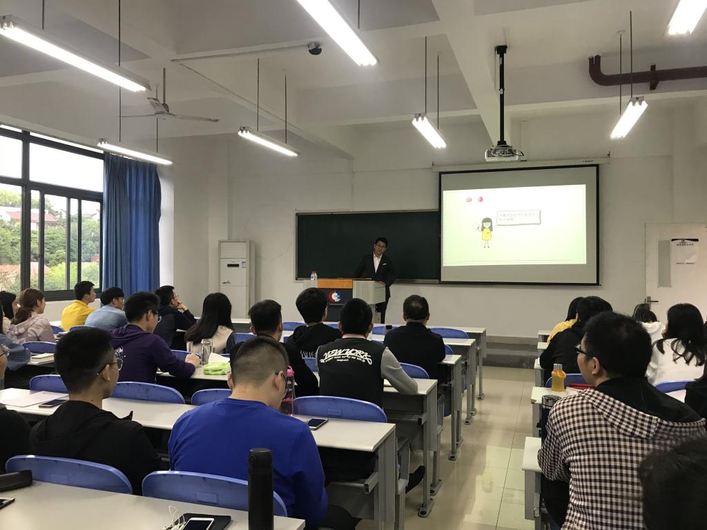2018年4月25日下午3点30分,华泰证券重庆营业部刘勇总经理在田家炳教学楼50406教室,以证券前沿问题暨就业和职业规划辅导为题,为2016级和2017级的学硕及专硕的同学们作了一场干货满满,令人受益匪浅的讲座,讲座由学院党委书记杨萍主持。