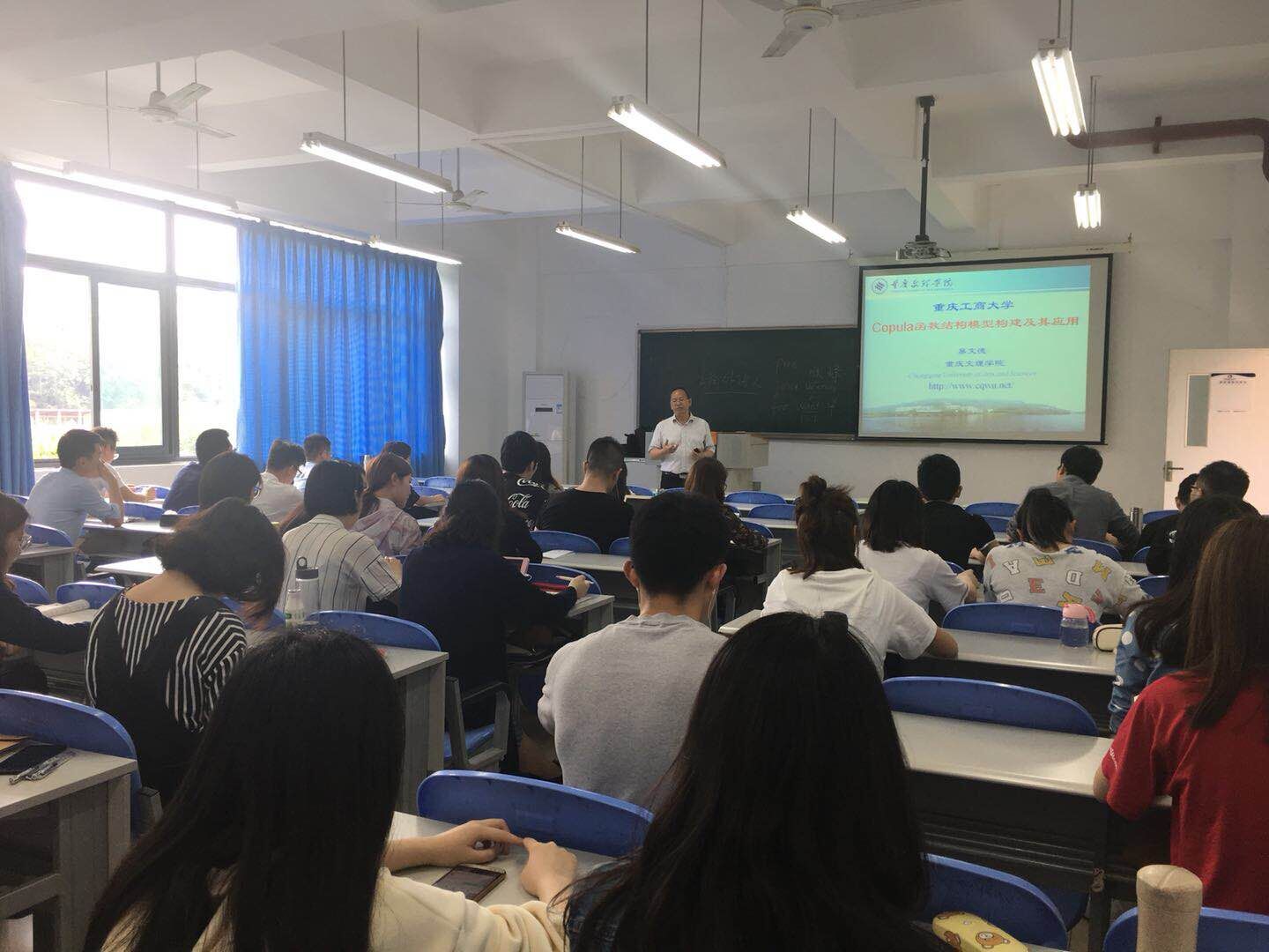 2018年5月4日下午3点,重庆文理学院的易文德教授在田家炳教学楼50406教室,以Copula函数及其应用为题,作了一场干货满满,令大家受益匪浅的讲座。讲座由学院副院长曾胜教授主持,金融学硕、财政学硕、金融专硕的研究生、部分老师参加了此次讲座。