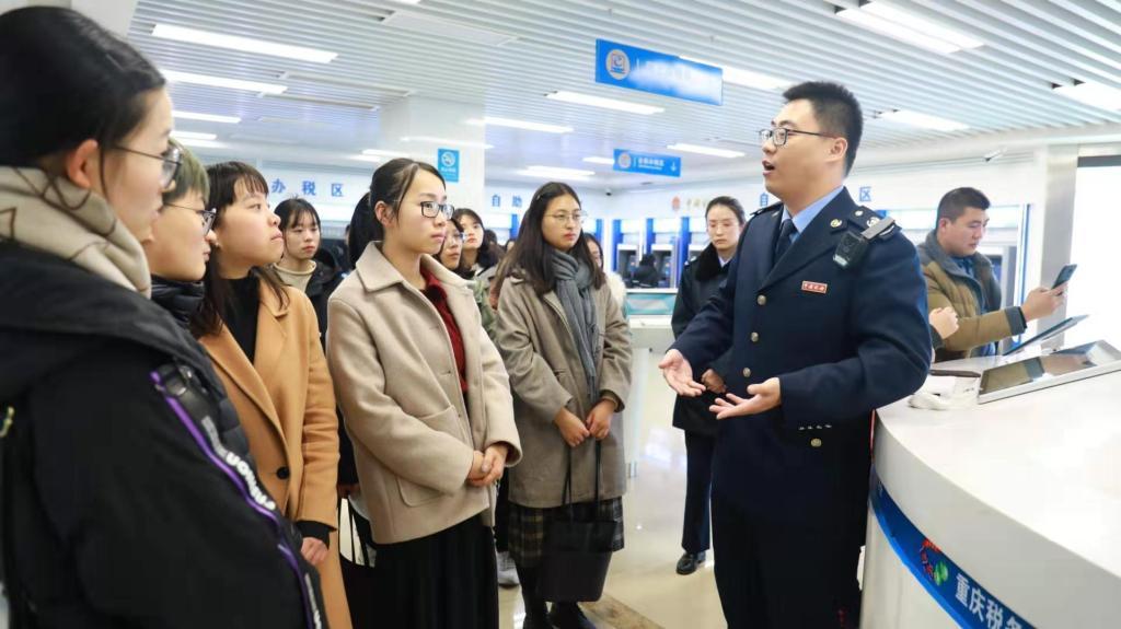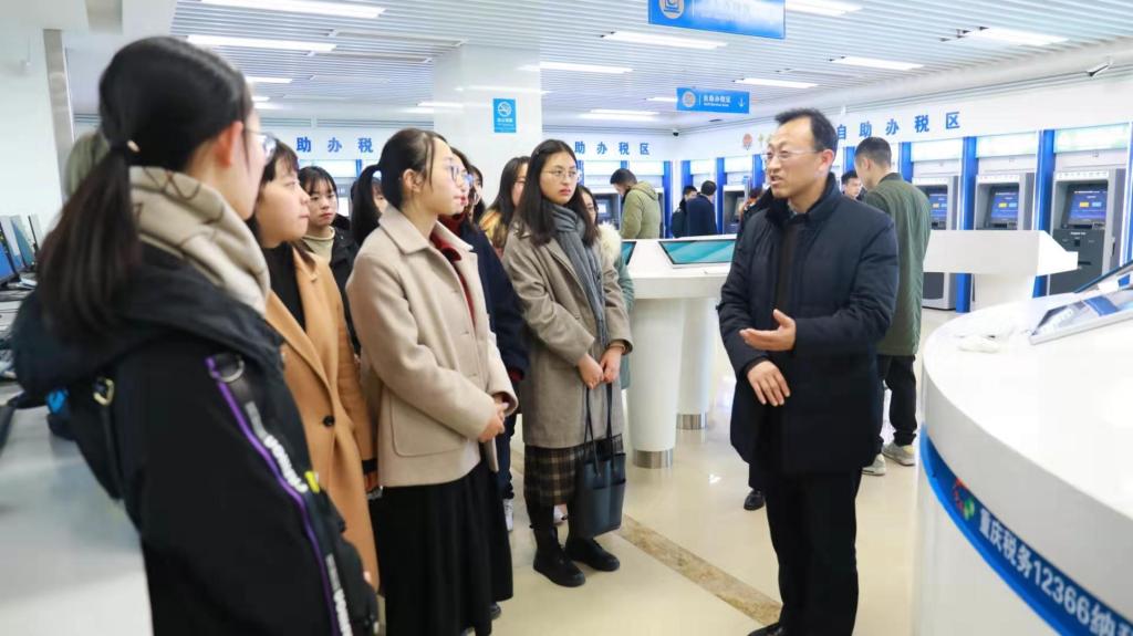 为了加强税收理论与实践融合教学,2019年12月26日下午,我校财政2138CC太阳集团组织2019级16名税务硕士走进重庆市南岸区税务局办税服务厅,开展了一次以学习大数据办税为主题的移动课堂。