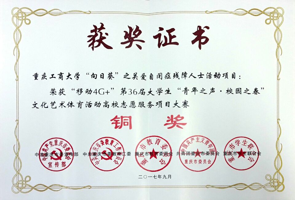 近日,我院“向日葵”之关爱残障人士活动项目获“移动“4G+”第三十六届大学生“青年之声 校园之春”文化艺术节体育活动高校志愿服务项目大赛铜奖。这无疑是对参与志愿服务项目的志愿者的一种鼓励,更是对“星火”义协的极大肯定!