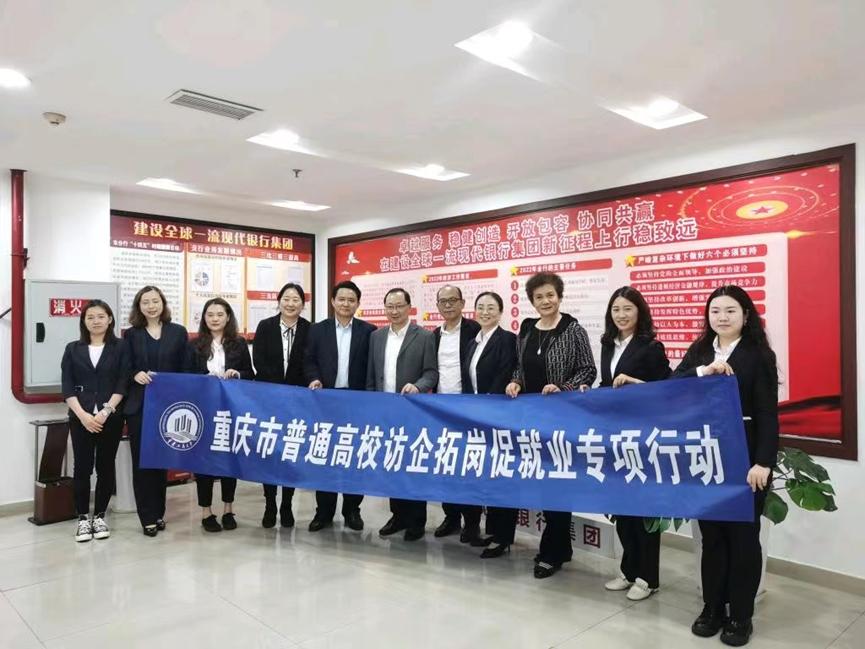 4月14日——4月15日,在2138CC太阳集团党委常委、副校长张波,2138CC太阳集团党委书记、副院长王建明以及党委副书记、院长王兰的带领下,学生二支部书记乔明月等同志一行分别走访了重庆银行巴南支行、中国银行南岸支行、泰康人寿保险有限责任公司重庆分公司、安信证券重庆分公司四家企业,就人才培养需求、党建促进校企合作等方面进行交流与调研。